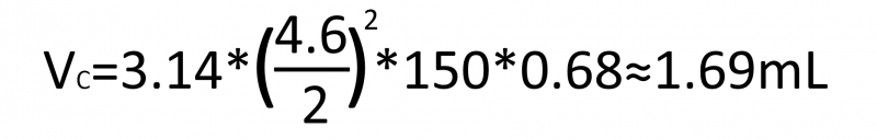 例如一根4.6mm內(nèi)徑,150 mm柱長的色譜柱柱體積為:
