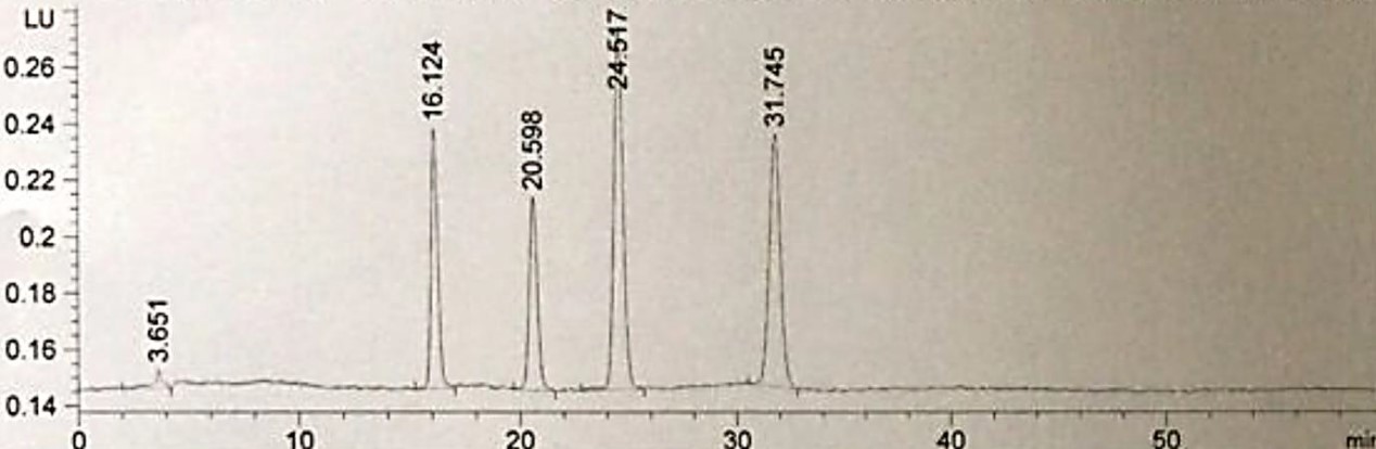 方法:GB 5009.28-2016 色譜柱:Titank C18 5μm 150×4.6mm(貨號:FMF-5560-EONU) 流動相:甲醇-乙酸銨溶液(0.02mol/L)(5:95)