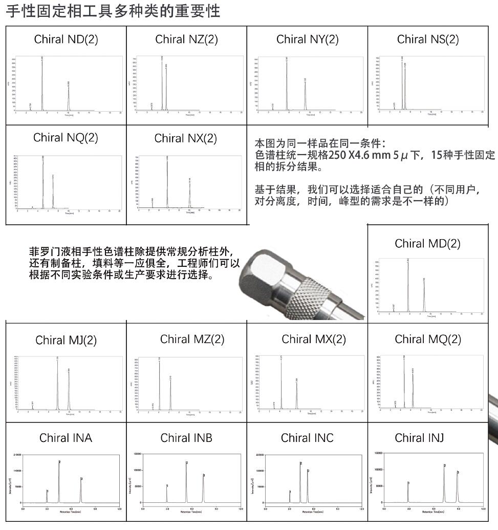 菲羅門Chiral液相手性色譜柱種類齊全,多糖衍生物系列,多種固定相選擇,滿足您的拆分要求
