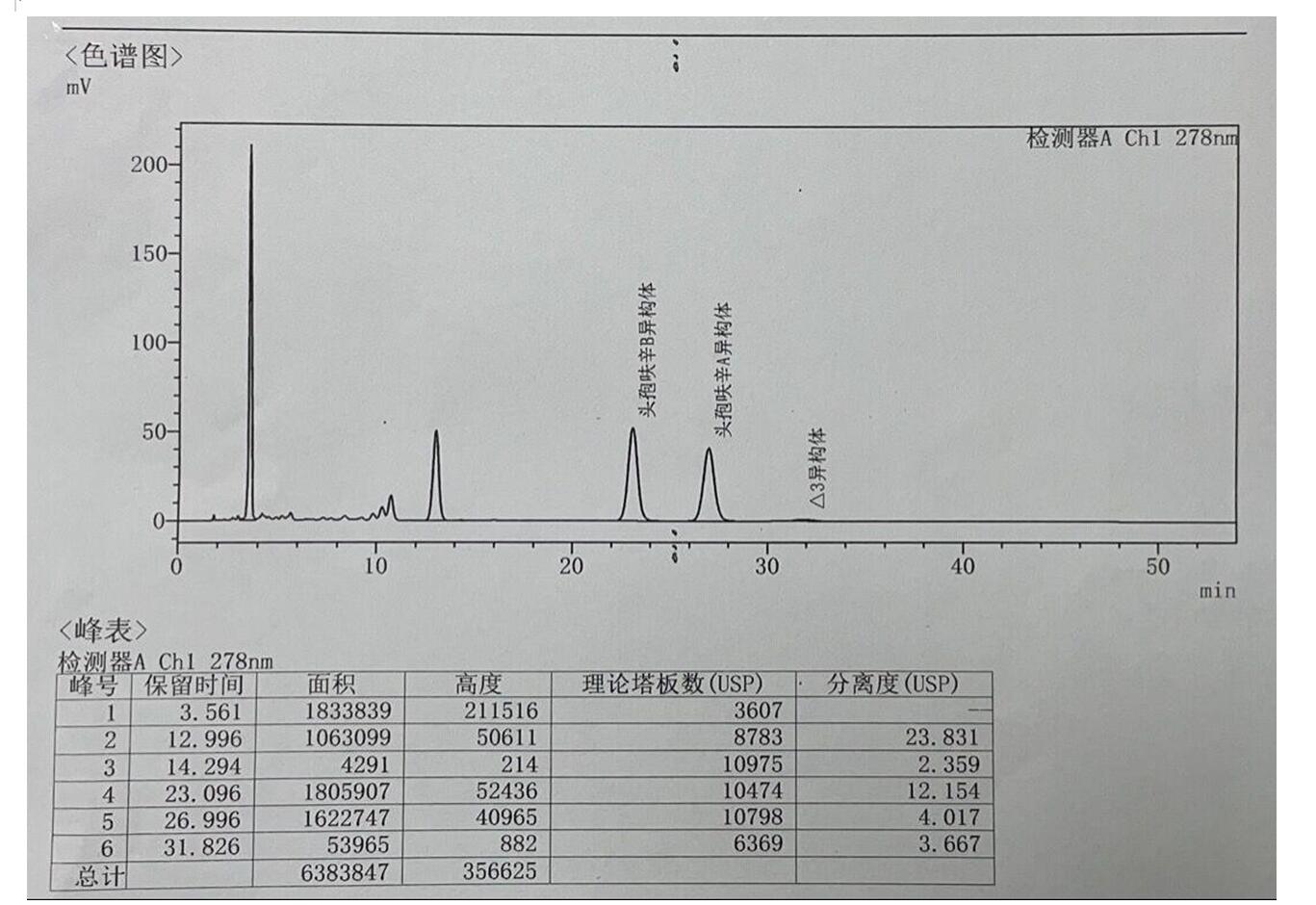 客戶評(píng)價(jià):頭孢呋辛酯 A、B 異構(gòu)體、△3-異構(gòu)體與兩個(gè) E 異構(gòu)體峰的相對(duì)保留時(shí)間分別約為 1.0、0.9、1.2與 1.7 和 2.。頭孢呋辛酯 A、B 異構(gòu)體之間,頭孢呋辛酯 A-異構(gòu)體與△3-異構(gòu)體之間的分離度均應(yīng)符合要求。