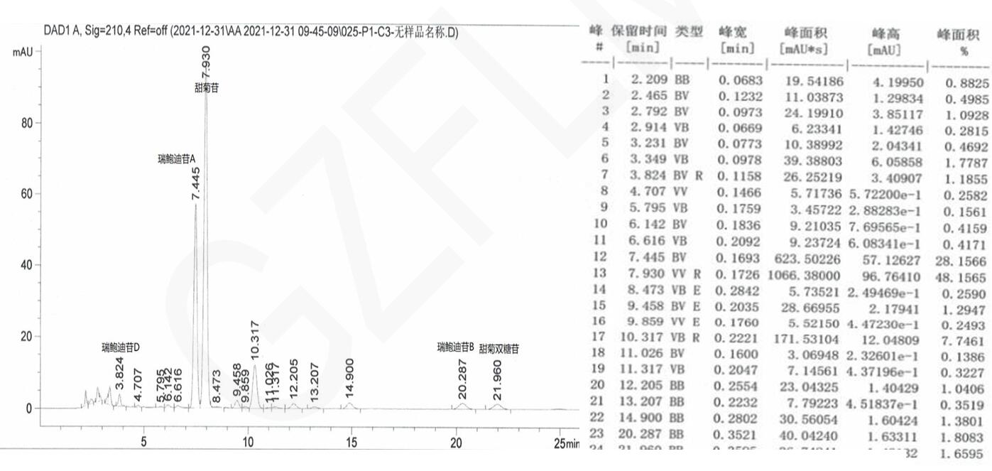 甜菊糖的HPLC檢測