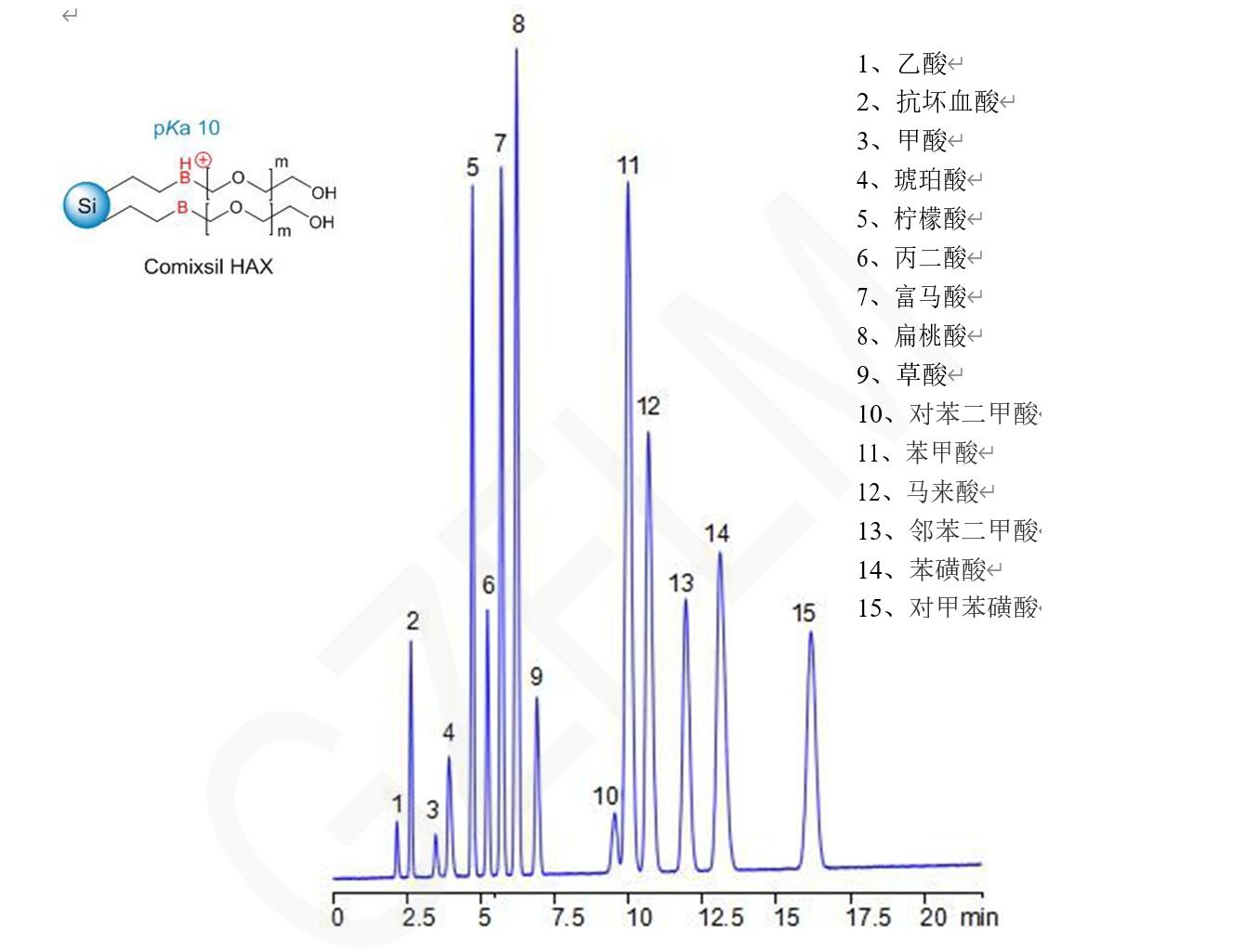 Comixsil HAX 混合模式分離 15 種有機酸