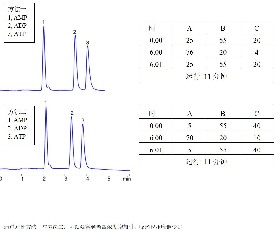 1. **色譜圖**: - 通過色譜圖可以直觀地看到AMP、ADP和ATP的分離情況。每個化合物在色譜圖上都有一個特定的保留時間,這是其身份識別的關(guān)鍵依據(jù)。