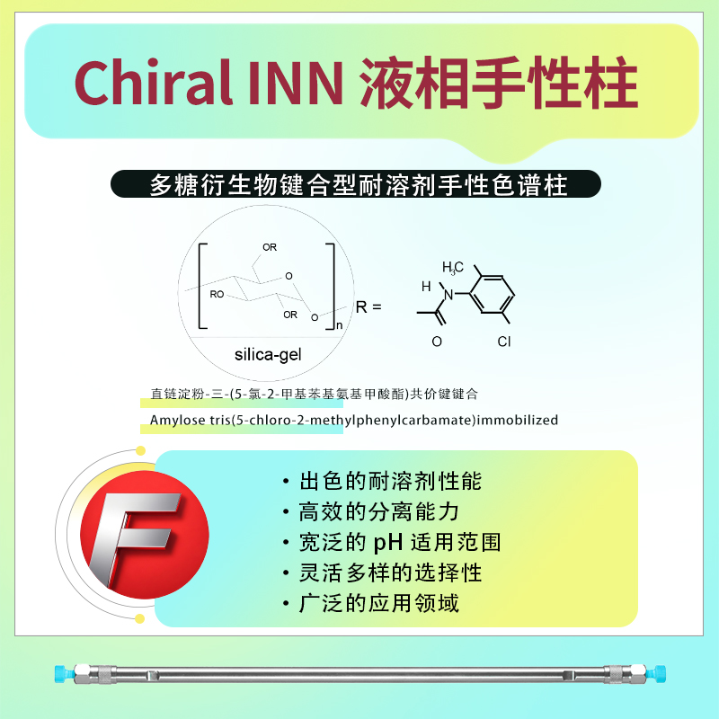 Chiral INN 手性柱廣泛應用于液相色譜分析中,特別是在需要分離手性化合物對映異構體的場合。其應用場景包括但不限于藥物研發過程中的質量控制、手性藥物的藥代動力學研究、手性化合物的合成與純化等。