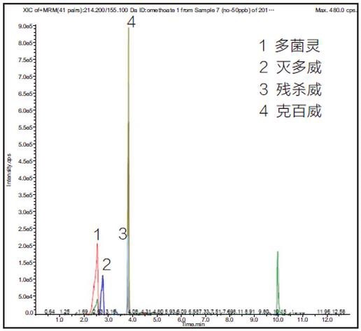 圖 1 四種農(nóng)殘待測(cè)物總離子流圖