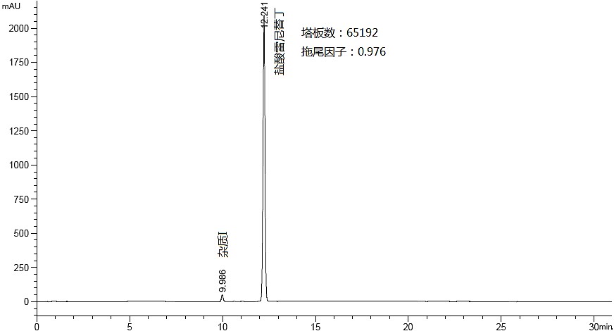 流動相:A:磷酸鹽緩沖液(取磷酸6.8ml置1900ml水中,加入50%氫氧化鈉溶液8.6ml,加水至2000ml,用磷酸或50%氫氧化鈉溶液調節(jié)pH值至7.1±0.05)-乙腈(98:2)