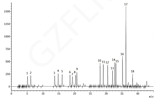 轉移 200μL 的 18 種氨基酸標準溶液(或樣品溶液)入 1.5mL 塑料管中,加入 100μL 三乙胺溶液和 100μL 異硫氰酸苯酯溶液,混合,至于室溫下反應 1h 后,加入 400μL 正己烷,渦旋振蕩 10min。取澄清的下層液,稀釋三倍后,用 0.45μm 濾膜過濾后進樣。