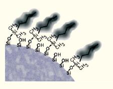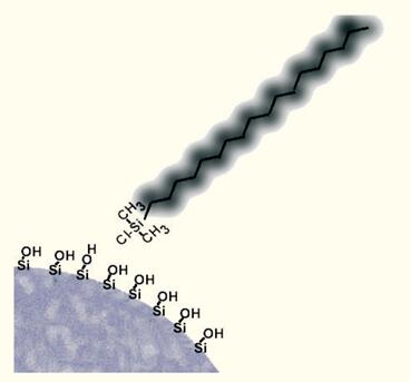 圖9. 通過(guò)利用有機(jī)氯硅烷將疏水性配體化學(xué)鍵合到硅膠表面形成了疏水界面。
