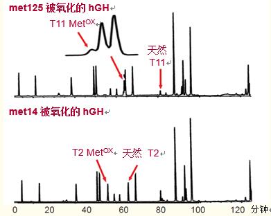 圖36. 部分氧化的人生長(zhǎng)激素的肽圖。